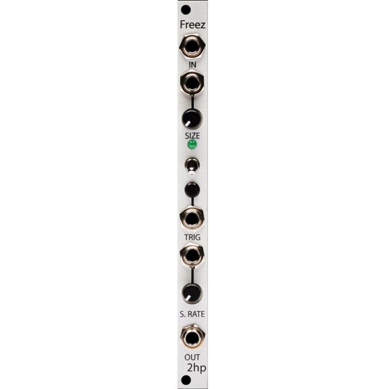 The 2hp Freez is a voltage controlled locked looper. It captures moments of audio in buffers, where they can be minced and mangled beyond recognition. Once frozen, adjusting size will cause pitch and timbre changes to the locked audio.