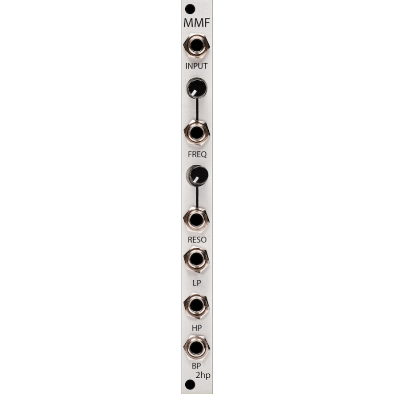 The 2hp MMF is an analog, multimode filter with a 12dB per octave slope. Its sonic character swings all the way from classic low pass to squelchy acid lines. Simultaneous ouputs of low pass, high pass and band pass filter types are provided allowing for many variations of the input signal. Whether you're looking for smooth and creamy or resonant and wild, MMF can go there.