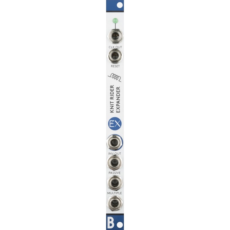 The Knit Rider Expander adds clock OUT and reset IN / OUT connections to the Knit Rider sequencer. It doesn't work without the Knit Rider eurorack module