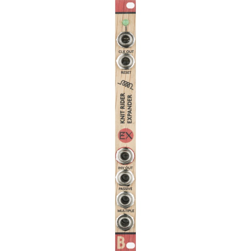 The Knit Rider Expander adds clock OUT and reset IN / OUT connections to the Knit Rider sequencer. It doesn't work without the Knit Rider eurorack module