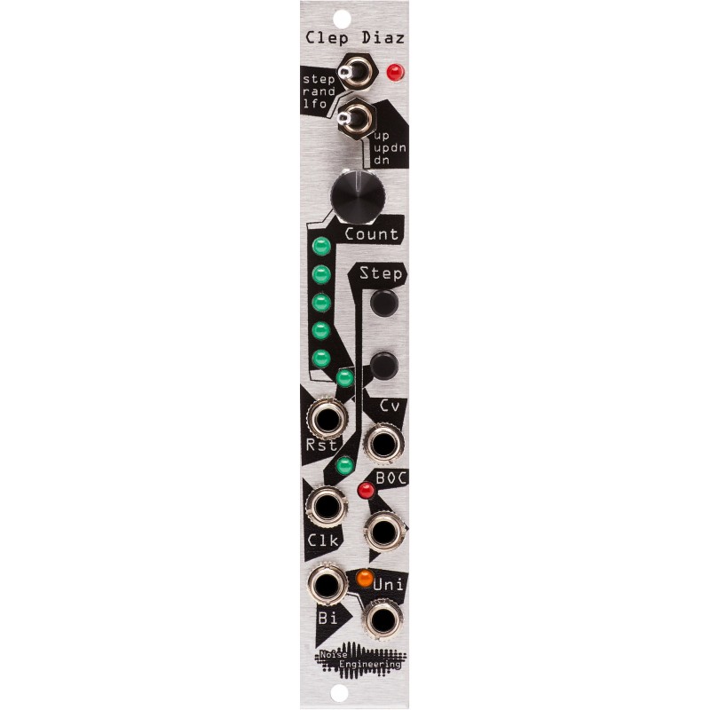 The Noise Engineering Clep Diaz is a handy and small step CV and LFO generator. In step and random modes, use the encoder to control the number of steps in the sequence. In LFO mode, the encoder controls the amplitude of the wave. Toggle the directionality of the sequence: up, down or up / down to customize the CVs further. The Clep Diaz also gives CV control over the number of steps in the sequence and an end-of-cycle trigger output. Unipolar and bipolar outputs allow maximal control.