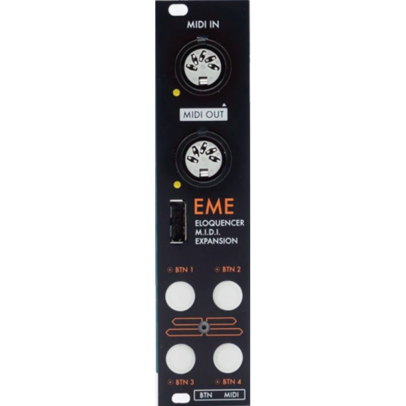 EME is the perfect companion for the Eloquencer, adding capabilities to sync with MIDI devices, control most of the Eloquencer parameters with MIDI interfaces, generating MIDI voices from the Eloquencer tracks and converting MIDI signals to the Eurorack world.